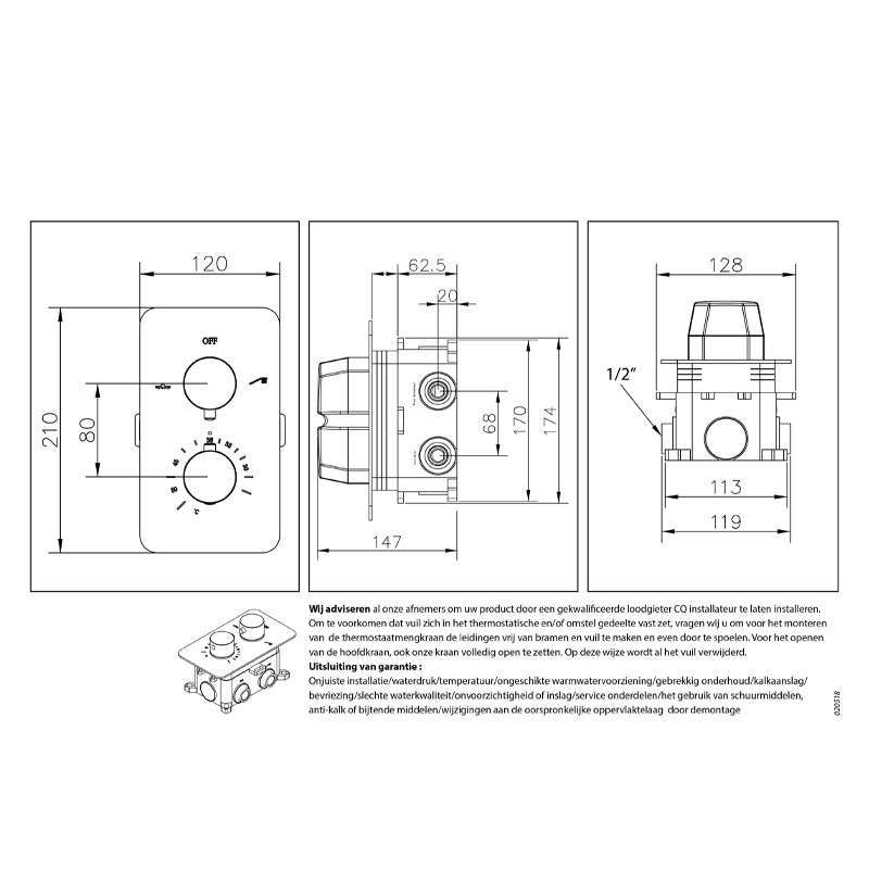 Opsteekmuuraansluiting 1/2" aanwezig: | Ja |