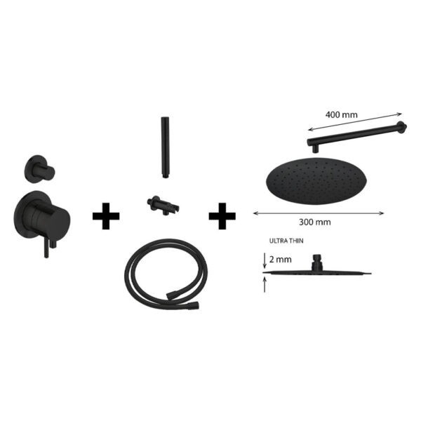 Design inbouw regendouche set M-300 Mat-Zwart rond
