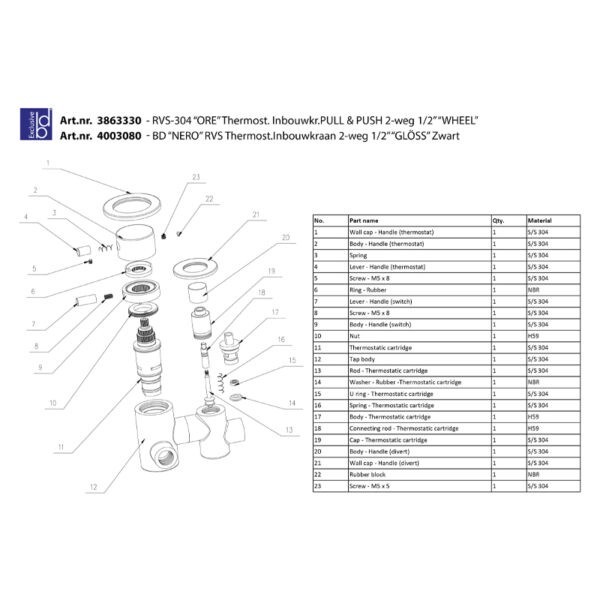 Materiaal douchekop: | RVS-304 |
