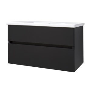 Design Meubel Greeploos Onderkast en Wastafel 100cm Mat-Zwart