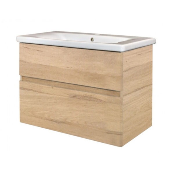 Design Meubel Greeploos Onderkast en wastafel 80cm Grijs-Eiken