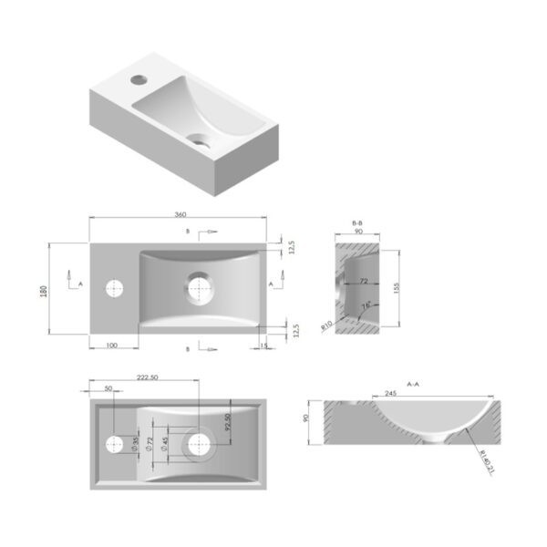 Design Mona-Rechts fontein incl.handdoekhouder Just-Solid 33x18x16cm